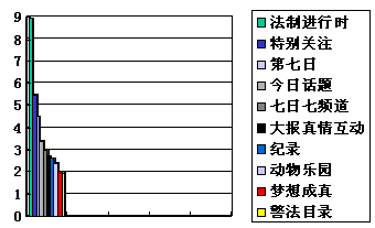 1.在欄目選擇上,北京消費(fèi)者政治、經(jīng)濟(jì)、新聞意識(shí)濃厚,即便是電視媒體,在地方電視媒體選擇上,也主要以以上幾項(xiàng)收視率較高,如《法制進(jìn)行時(shí)》、《特別關(guān)注》、《第七日》等節(jié)目。其重播收視率較高,同時(shí),同期在移動(dòng)電視播放。