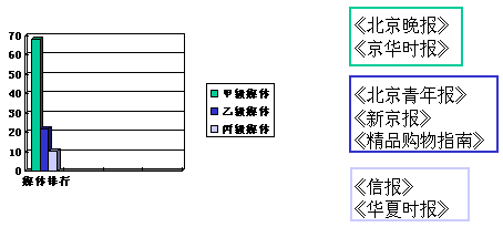 目前,北京的報(bào)紙媒體相對全國較為發(fā)達(dá),據(jù)調(diào)查結(jié)果顯示,北京市場主流媒體主要是《北京晚報(bào)》、《京華時(shí)報(bào)》、《北京青年報(bào)》、《新京報(bào)》、《信報(bào)》、《北京晨報(bào)》、《精品購物指南》(如下表)。