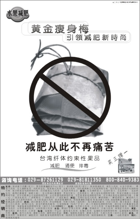 黃金瘦身梅報(bào)刊廣告刊登于2005年11月22日<<西安晚報(bào)>>