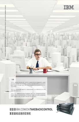 酷!典型的IBM廣告風格:幽默、冷靜、簡潔、有力。不錯,這則廣告的風格是非常明顯的。廣告通過簡潔的大標題——“重掌基礎設施的控制權”——將訴求重點一句點明,毫不拖泥帶水,非常有力。廣告的視覺內(nèi)容表現(xiàn)了服務器的“森林”,整個畫面以接近于白色的冷色調(diào)為主,從而使畫面具備了很強的科幻氣氛。精彩的廣告正文像是在敘述一個緊張的、令人屏息的“新黑客帝國”的故事,對于整天面對冰冷機器或要做出重要購買決策的潛在目標群體很具有說服力。廣告的畫面和文字內(nèi)容展現(xiàn)了客戶可能遇到的困境,從而巧妙地強調(diào)了IBM能夠幫助客戶解決問題、實現(xiàn)價值。