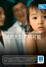 廣告有所謂的“3B”原則之說,哪三“B”呢?一指美女、一指孩子、一指寵物。這個所謂的原則說得是廣告中利用美女、孩子、寵物這三種形象可以大大加強廣告的吸引力和親和力。Intel這個廣告就使用了可愛的孩子形象,使廣告表現(xiàn)非常搶眼。這則廣告創(chuàng)意的精彩之處還在于講述了一個Intel幫助“檔案儲藏室變成了兒科診所”的真實故事。Intel的這則廣告把其所服務的客戶名稱放入標題,從而體現(xiàn)了Intel以客戶為中心的經(jīng)營理念。廣告把Intel和其服務的客戶放在一起,使兩者的命運看起來息息相關,同時也使Intel對于客戶的價值得到了充分的體現(xiàn)。如果想要增強廣告的表現(xiàn)效果,孩子的表情帶點笑容會更佳;廣告背景的色調(diào)也可以嘗試做細微的調(diào)整,使廣告整體看起來更加明快。