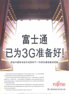富士通的這則廣告值得一提的是它的大標題——“富士通已為3G準備好!”。這個大標題語言簡潔、直白、有力,字體設計也非常的醒目、大方。大標題是以感嘆號作為標點符號結(jié)尾的,充分體現(xiàn)了企業(yè)的信心和面向未來挑戰(zhàn)的勇氣。副標題——“將給中國帶來技術成熟的下一代移動通信基礎設施”——較好地承接了大標題,又引導讀者去看小字的正文。正文的第一句——“富士通是日本最大移動運營商的長期信賴的供應商”——起得很好,突出了企業(yè)的優(yōu)勢和所提供的服務。廣告的視覺內(nèi)容選擇一個中國人非常熟悉的視覺符號——古代宮殿的大門,可以說是體現(xiàn)了廣告創(chuàng)意人和企業(yè)相關決策者對于中國本土文化的重視。如果說這則廣告哪里還值得改進的話,大概有兩個方面可以考慮:一是視覺內(nèi)容只是簡單選用了舊元素,在設計略顯缺乏新意,二是廣告在整體風格上似乎限制了制作系列廣告的空間,可能和企業(yè)其他廣告在風格上難以保持戰(zhàn)略性的統(tǒng)一。