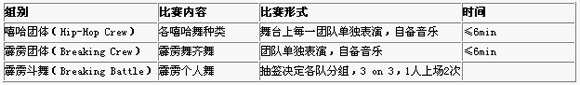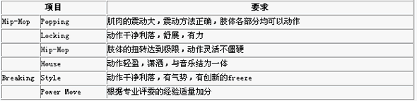 街舞比賽(服裝、音樂(lè)、動(dòng)作按照規(guī)則要求比賽)