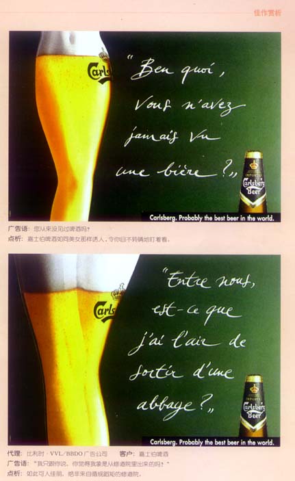 廣告語:你從來沒開過啤酒嗎? 我只跟你說,你覺得我像是從修道院里出來的嗎?
