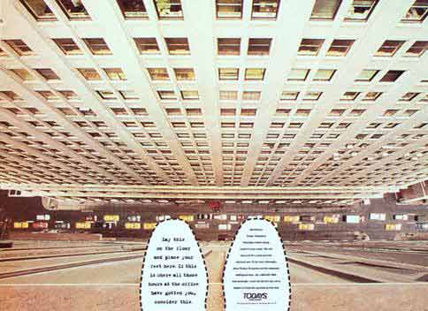 心理醫(yī)生診療所的廣告。上面寫著:把這張圖放在地板上,站在虛線框里,如果工作的壓力把你逼到了這個(gè)地步,請考慮本診療所。
