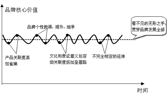 若能進行微調(diào),有連續(xù)地漸變,提升出有繼承性的新的品牌核心價值與基本識別,會使品牌的延伸能力擴大。