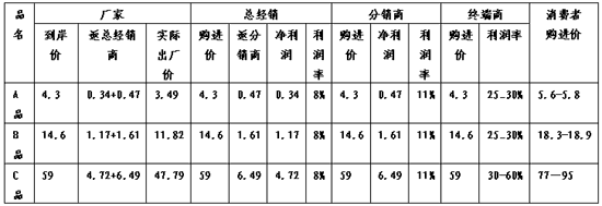 注:上述各個(gè)通路的利潤(rùn)率可根據(jù)當(dāng)?shù)厥袌?chǎng)實(shí)際,上調(diào)若干個(gè)百分點(diǎn);各個(gè)通路的促銷費(fèi)用由廠商兩家共同制定。