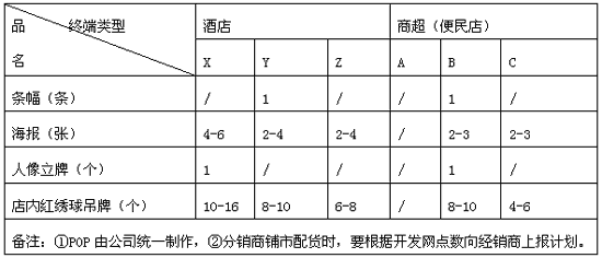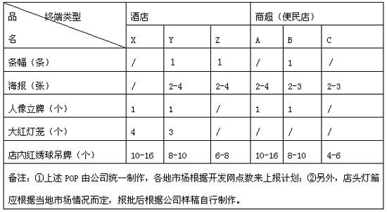 C、X、Y酒店促銷,要根據(jù)各個(gè)產(chǎn)品促銷力度,實(shí)行買贈(zèng)和刮卡促銷形式,各個(gè)市場(chǎng)結(jié)合實(shí)際,進(jìn)行個(gè)案申報(bào)。