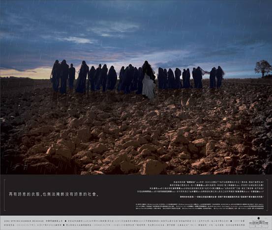 我接觸的國內(nèi)的意識形態(tài)廣告不多,但在國內(nèi)的地產(chǎn)廣告中,也能捕捉到意識形態(tài)的蹤影。并不能說他的層次比臺灣的要次,我感覺在很大程度上受到了國內(nèi)消費(fèi)者的欣賞層次,受眾水平的限制,曲高和寡,不能引起消費(fèi)者共鳴,就算文字再美,意識再前衛(wèi)又能如何?