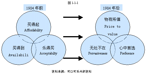 物有所值(Price to Value):是要求可口可樂公司的產(chǎn)品不僅消費(fèi)者有能力購(gòu)買,而且必須力爭(zhēng)使消費(fèi)者獲得的回報(bào)價(jià)值符合甚至超過(guò)他的付出。無(wú)處不在(Pervasiveness):是要求可口可樂公司的產(chǎn)品必須滲透到市場(chǎng)的每一個(gè)角落,使得消費(fèi)者能夠在任何時(shí)候、任何地點(diǎn)都可以方便的購(gòu)買到。心中首選(Preference):則要求可口可樂公司的產(chǎn)品不僅能夠被消費(fèi)者喜歡和接受,而且要力爭(zhēng)占據(jù)消費(fèi)者的心志,成為其首選產(chǎn)品或品牌。
