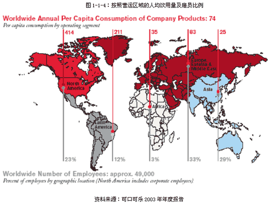 2002年底可口可樂公司全球雇員以達(dá)到大約49,000人(見圖1-1-4)。