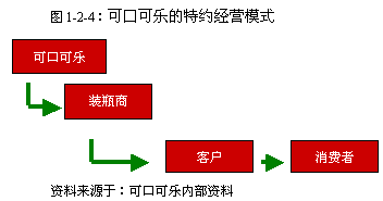 可口可樂的特約經(jīng)營(yíng)模式(見圖1-2-4),開始于二十世紀(jì)早期,就是與區(qū)域內(nèi)當(dāng)?shù)氐暮献骰锇楹炗喴欢晗薜奶卦S生產(chǎn)經(jīng)營(yíng)合同,由其在特定區(qū)域內(nèi)生產(chǎn)銷售可口可樂系列產(chǎn)品,并協(xié)助進(jìn)行品牌的維護(hù)和發(fā)展。通過(guò)這種方式可口可樂不但解決了市場(chǎng)擴(kuò)張中的資源瓶頸問(wèn)題,同時(shí)還極其巧妙的實(shí)現(xiàn)了品牌國(guó)際化和運(yùn)作本土化的和諧統(tǒng)一。