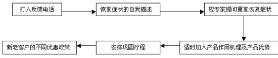 第三.四周:此階段每天安排2個(gè)以上反饋電話,結(jié)合某產(chǎn)品優(yōu)勢(shì)及適應(yīng)癥狀入手,多角度提問(wèn),1個(gè)針對(duì)不同癥狀的咨詢電話,以前者為主,后者為輔。