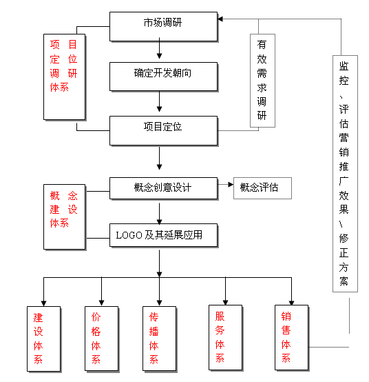 從全程營(yíng)銷的角度來(lái)看,樓盤營(yíng)銷實(shí)際包括七大體系,即由市場(chǎng)調(diào)研、項(xiàng)目選址、項(xiàng)目定位構(gòu)成的項(xiàng)目定位調(diào)研體系;由概念設(shè)計(jì)、形象包裝等構(gòu)成的概念建設(shè)體系;由規(guī)劃設(shè)計(jì)、施工建設(shè)構(gòu)成的項(xiàng)目建設(shè)體系;由銷售策略、促銷策略、房源控制、銷售人員培訓(xùn)管理等構(gòu)成的樓盤銷售體系;由推廣策略、媒體整合、新聞策劃等構(gòu)成的傳播推廣體系;由價(jià)格策略和價(jià)格分配等構(gòu)成的價(jià)格體系;由售前服務(wù)、售中服務(wù)、售后服務(wù),以及物業(yè)管理構(gòu)成的項(xiàng)目服務(wù)體系。