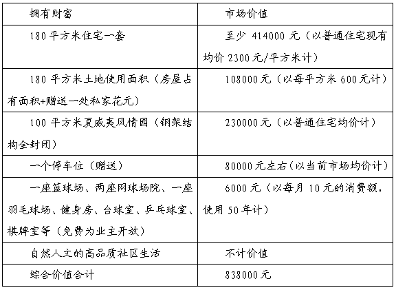 如果按麗景江山別墅現(xiàn)在售價(jià)2800元/平方米計(jì),180平方米合計(jì)為504000元。而實(shí)際得到的價(jià)值至少為838000元。高出購房款334000元。收益率為66%。