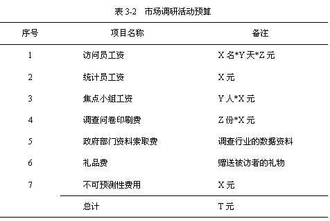 為了使調(diào)研活動的整個過程更加嚴密,我們做出了某城市整個市場調(diào)研活動的詳細經(jīng)費預(yù)算(表3-2),不僅包括了固定的費用,還為不確定事件劃出了預(yù)留費用,以保證一切順利進行!