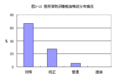 橄欖油根據(jù)其提煉程序不同有不同的等級(jí),最好的橄欖油是初榨的,其次是純正的,最差的是渣油。調(diào)查結(jié)果表明,在中國市場大部分人購買初榨橄欖油(如圖3-10)。