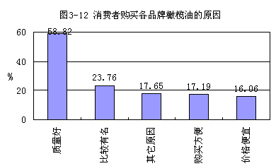 消費(fèi)者購買各品牌橄欖油的原因顯示,在消費(fèi)者作購買選擇時(shí),質(zhì)量好和比較有名是非常重要的影響因素。而質(zhì)量好與品牌知名度有密切的相關(guān)性。前者一般是通過后者來感知,說明廠商堅(jiān)持走品牌營銷之路的重要性。這也正是各主要橄欖油廠商正逐步關(guān)心自己的營銷戰(zhàn)略,開始走品牌之路和精細(xì)化營銷之路的原因所在(如圖3-12)。
