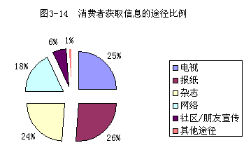 與此同時(shí),主導(dǎo)品牌的橄欖油盡可能的利用報(bào)紙、電視、雜志和網(wǎng)絡(luò)等可能的傳播途徑來宣傳和影響消費(fèi)者,以提高品牌知名度,增強(qiáng)自身的競爭能力。研究表明,人們獲取信息的最主要的途徑是報(bào)紙、電視、雜志和網(wǎng)絡(luò),其比例分別為72.00%、71.43%、64.57%和48.57%。其中通過報(bào)紙、電視和雜志獲取信息的人超過了60%(如圖3-14)。