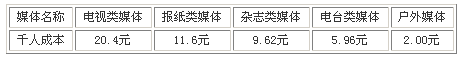 列表:各類媒體千人成本比較