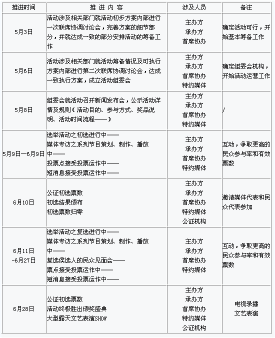 六、 活動(dòng)流程推進(jìn)表(時(shí)間進(jìn)度):