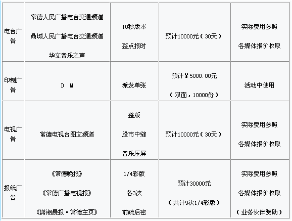 四、“洞庭毛記飯店”的前期宣傳媒介購買方案: