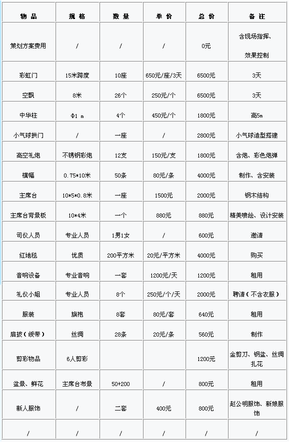 三、開業(yè)慶典總體結(jié)構(gòu)策劃設(shè)想: