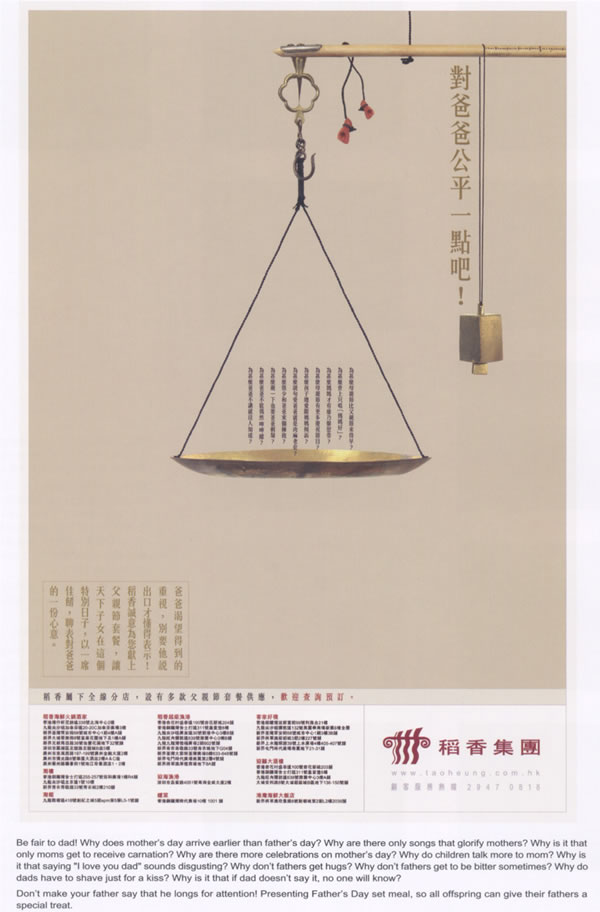 爸爸渴望得到的重視,別要他說(shuō)出口才懂得表示!稻香誠(chéng)意為您獻(xiàn)上父親節(jié)套餐,讓天下子女在這個(gè)特別日子,以一席佳肴,聊表對(duì)爸爸的一份心意。