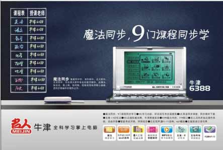 廣告主訴求點(diǎn):1=9,即1臺(tái)名人牛津6388=9位貼身老師