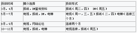 產(chǎn)品初進市場,消費者不了解產(chǎn)品,需要電視打品牌,紙媒體說服的策略,初步媒介定為,電視,報紙,電梯,網(wǎng)絡(luò)論壇,DM宣傳資料,路牌。有效保證了收視率和到達率的平衡。