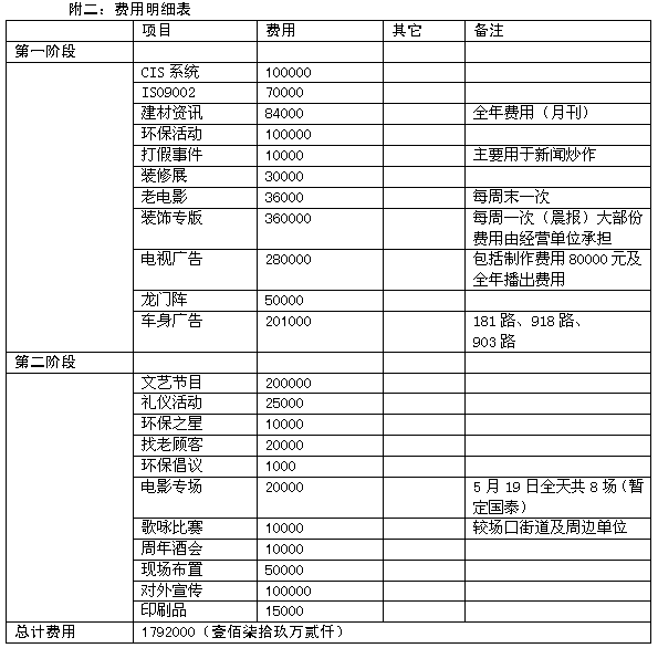 費(fèi)用預(yù)算:100000元(包括軟、硬宣傳)