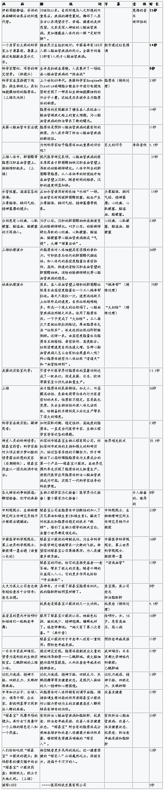 創(chuàng)意思路: 一、心腦血管疾病引發(fā)的人類生命危機以及人類對其解決辦法的找尋。二、脂質體的發(fā)現(xiàn)對抗擊心腦血管疾病的重大意義(插入詳細的三維機理分析)、中外科學家的探索攻關以及批量生產的“技術瓶頸”。三、綠泰寶口服液的研制成功對生物工程學和現(xiàn)代醫(yī)學的重大意義和貢獻(專家闡述)、應用中凸現(xiàn)的更多功效(抗衰老、防治老年癡呆癥和脂肪肝、改善亞健康狀態(tài)。)。四、無限前景展望。