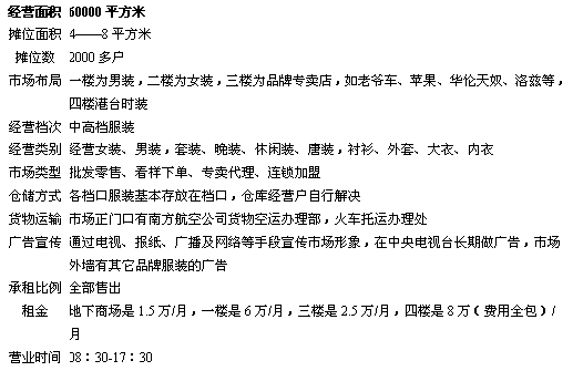 3.租金較高。在白馬服裝批發(fā)市場內(nèi),地下商場的租金1.5萬/月,一樓為6萬/月,三樓為2.5萬/月,四樓為8萬(費用全包)。租金明顯比其它周邊市場要高;