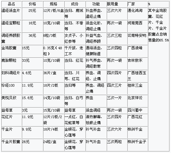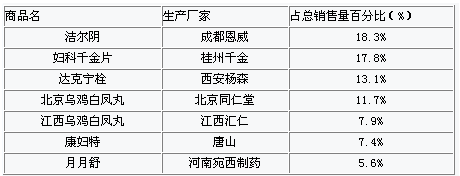 調(diào)經(jīng)用藥益母草沖劑排名第7位,占相當(dāng)份額。如表: