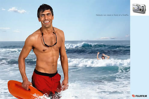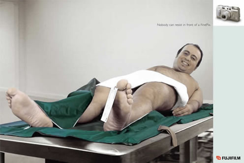 Nobody can resist in front of Finepix。沒有人能拒絕這樣的誘惑。想必記者朋友們對(duì)這組廣告會(huì)比較感同身受,平時(shí)出去跑采訪做報(bào)道,端著拉風(fēng)一點(diǎn)的相機(jī),頓時(shí)顯得很專業(yè)(其實(shí)很可能是個(gè)攝影菜鳥),對(duì)象給我的表情都要生動(dòng)些?鋸埖那榫爸圃斐鰰r(shí)分幽默的效果,畫面執(zhí)行干凈緊湊,細(xì)節(jié)處亦毫不含糊(請(qǐng)注意拳擊場(chǎng)背景廣告牌的處理)。