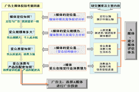 通常,廣告主在進(jìn)行媒介投放的時(shí)候,會(huì)從以下角度(如圖一所示),通過四個(gè)步驟對備選媒介進(jìn)行考量和篩選,最終選擇邊際效益最大的媒介進(jìn)行廣告投放。