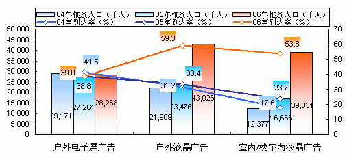 圖三:04年-06年戶外視頻媒體周到達(dá)人口變化