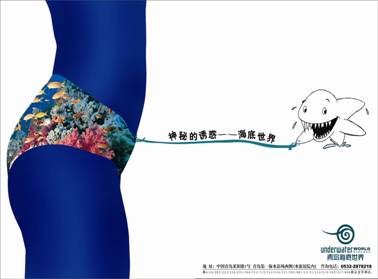 青島海底世界2003年6月落成,面向全國(guó)進(jìn)行推廣。青島五洲廣告在對(duì)客戶(hù)市場(chǎng)和消費(fèi)者進(jìn)行深入分析之后,確定了以“魅力海底世界”為定位的廣告運(yùn)動(dòng)策略,從平面設(shè)計(jì)到電視廣告都充分發(fā)掘其“魅力”資源,并進(jìn)行了人性化的展現(xiàn),收到了很好的廣告效果。