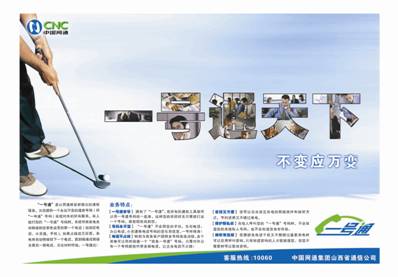 廣告形式:第一階段,1/2彩版形象稿結(jié)合簡(jiǎn)練文字,直接描述“一號(hào)通”的兩大特性——“一號(hào)通天下、不變應(yīng)萬(wàn)變”;第二階段以形象稿為襯托,承接前期宣傳,多篇使用該業(yè)務(wù)的代表性文章,說(shuō)明和體現(xiàn)用戶的利益點(diǎn);配合宣傳相關(guān)營(yíng)銷期間的優(yōu)惠政策。