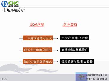 廣告目的:建立產(chǎn)品形象,建立山西通信“一號(hào)通”在同類產(chǎn)品的主導(dǎo)地位。