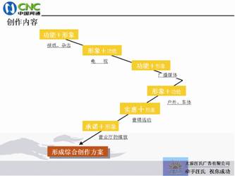 廣告形式:第一階段,30秒的形象廣告,配以電視劇中掛角,讓“一號(hào)通”在用戶心中形成印象;第二階段,持續(xù)性的掛角延伸宣傳“一號(hào)通”的特性,及對(duì)促銷活動(dòng)進(jìn)行實(shí)時(shí)宣傳。