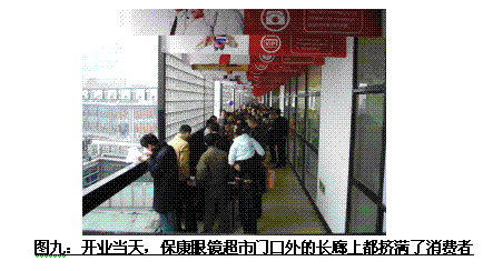 ——在開(kāi)業(yè)后的兩周內(nèi),對(duì)每天超市開(kāi)門(mén)之前排隊(duì)的前88名消費(fèi)者給予特別優(yōu)惠,只需花3元錢(qián)就可購(gòu)買(mǎi)300元以內(nèi)的鏡框。于是在那兩個(gè)星期內(nèi),天一廣場(chǎng)的早上的喧囂只屬于四樓一隅的?。優(yōu)惠券甚至成為當(dāng)時(shí)寧波一些高校內(nèi)拍賣(mài)的熱門(mén)物品。