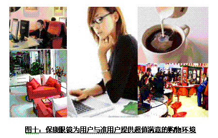 ?涤媒200平米設(shè)立了休閑區(qū),一方面巧妙地將平價(jià)區(qū)與精品區(qū)進(jìn)行了區(qū)位區(qū)隔,另一方面為打造自己?氮(dú)特的購(gòu)物環(huán)境與增值服務(wù)提供了很大空間。由于傳統(tǒng)眼鏡店都是在寸土寸金的黃金口岸開(kāi)設(shè)的,所以除了奢華的裝修外,基本沒(méi)有太多地考慮消費(fèi)者在選購(gòu)眼睛過(guò)程中需要較長(zhǎng)時(shí)間呆在店里的事實(shí)。而?党蟮臓I(yíng)業(yè)空間給了自己很大的想象空間,在休閑區(qū)內(nèi)有書(shū)吧、網(wǎng)吧、茶吧、咖啡吧、電視吧等功能的設(shè)置,使得無(wú)論是配鏡需要等待的消費(fèi)者,還是陪同前往的親友,都無(wú)需再焦慮中等待。而是可以在裝修精致、十分舒適的環(huán)境中選擇自己感興趣的項(xiàng)目消磨等待的時(shí)光。而且提供的這些一切服務(wù)都是免費(fèi)的,這對(duì)于本來(lái)就很滿意的消費(fèi)者又多了一份得意,于是事后向其他朋友介紹成為了?笛坨R最好的“口碑宣傳”廣告。