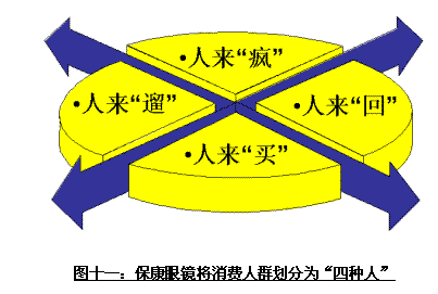 一個(gè)終端零售企業(yè)有時(shí)候存在似乎只有一個(gè)目的——找買(mǎi)主。而有時(shí)候我們又會(huì)發(fā)現(xiàn)一些終端零售企業(yè)最終把這個(gè)目的變成了一種現(xiàn)象——等買(mǎi)主。其實(shí)在中國(guó)很多傳統(tǒng)眼鏡店的生存狀況就是這樣,找一個(gè)人氣極旺的口岸,保持著很高的利潤(rùn)率,一天只要能夠賣(mài)出幾款產(chǎn)品就能基本保持盈虧平衡。也正是在這種“守株待兔”的模式下,中國(guó)幾乎發(fā)展至今都沒(méi)有一家嚴(yán)格意義上的全國(guó)眼鏡流通企業(yè)。對(duì)于這種現(xiàn)狀進(jìn)行沖擊的平價(jià)眼鏡超市的發(fā)展模式,雖然在一些地方獲得暫時(shí)了喧囂和熱鬧,但能否保持長(zhǎng)久的發(fā)展動(dòng)力對(duì)每個(gè)企業(yè)都是一個(gè)嚴(yán)峻的考驗(yàn)。?底匀灰睬逍训乜吹竭@種機(jī)會(huì)與壓力,于是他在開(kāi)業(yè)之初就將未來(lái)的消費(fèi)人群劃分為“四種人”,準(zhǔn)備進(jìn)行有計(jì)劃的開(kāi)發(fā)與管理。