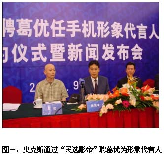 而在召開此次聘請形象代言人的發(fā)布會之前,奧克斯通訊啟動了一場形象代言人“選秀”活動,考慮到借勢中國電影百年的盛事,最終把“選秀”的目光鎖定在曾經(jīng)獲得國內(nèi)金雞、百花的“影帝”們。根據(jù)部署,奧克斯手機(jī)先是把姜文、葛優(yōu)、陳道明、張豐毅、李雪健、陳寶國、李保田、劉佩琦八位影帝列進(jìn)“候選名單”,然后由員工、供應(yīng)商、經(jīng)銷商以及公眾通過各種途徑投票。最后得票最高的那位,將由公司最終通過談判確定成為奧克斯手機(jī)的形象代言人。這樣的活動本身就有一定新聞性和趣味性,國內(nèi)娛樂媒體幾乎都進(jìn)行了報道,這對“無牌”而無法進(jìn)行宣傳的奧克斯,又巧妙地增加了在“金九銀十”期間的傳播力度。同時奧克斯對外反復(fù)強(qiáng)調(diào),奧克斯是國內(nèi)第一個沒有“牌照”而聘請形象代言人的企業(yè),讓公眾更加對“牌照”存在的合理性提出了很大的質(zhì)疑。