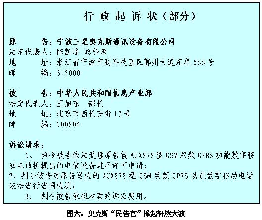 業(yè)與國家主管部委之間的法律訴訟此時深深吸引了民眾、專家、媒體、政府的注意。他們之間怎么了?為什么會對簿公堂?奧克斯哪來的膽子“民告官”?信息產(chǎn)業(yè)部將如何應(yīng)對? 就在大家對訴訟爭端密切關(guān)注的同時,短短數(shù)月,訴訟爭端很快就塵埃落定。奧克斯低調(diào)承認(rèn)撤訴,而在2005年2月19日,國家發(fā)改委公布了《移動通信系統(tǒng)及終端投資項目核準(zhǔn)的若干規(guī)定》,宣布對移動通信產(chǎn)品投資項目由審批制改為核準(zhǔn)制。2005年3月31日,國家發(fā)改委公布了首批核準(zhǔn)制體制下的新獲手機(jī)牌照的5家企業(yè)名單,奧克斯通訊公司名列其中。至此,中國手機(jī)行業(yè)進(jìn)入國企、外資、民營資本全面競爭的新時代。