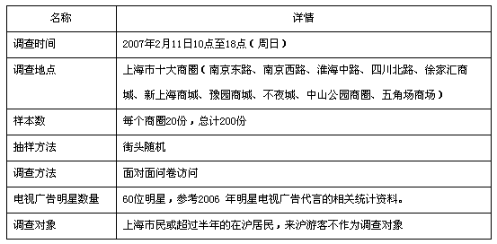 “上海市民心目中的中國(guó)電視廣告明星調(diào)查”是上海會(huì)眾文化傳播有限公司和上海大學(xué)傳媒研究中心共同策劃,在上海地區(qū)展開(kāi)的調(diào)查研究項(xiàng)目。