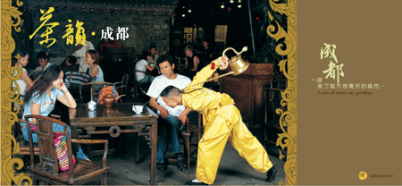 成都,永遠是閃光燈影聚焦的熱點,它為中外各種媒體形式提供著挖掘不盡的創(chuàng)作源泉。成都兩個字,曝光的頻率之高舉世矚目。這是成都的驕傲,更是媒體的幸運!遺憾的是,長期以來,我們在各種傳播過程中看到的、聽到的更多的只是這樣的一些雖然耳熟能詳,但是卻零散、陳舊、表象化的概念:天府風光、美食川菜、古蜀文化、熊貓故里……