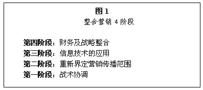 第二階段:重新界定營銷傳播范圍:在這一階段,公司開始定義新的或者廣義的傳播概念。組織試圖考慮得更加廣泛而不是局限于傳統(tǒng)的功能性廣告活動,銷售促進、直接營銷等等。