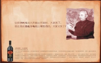 “包裝不錯(cuò),有點(diǎn)泊來品的味道喲,法國的吧?哎呀,陜西的,這哪能喝呀,幾塊錢?什么,你瘋了,和長(zhǎng)城價(jià)格差不多,那我為什么不去喝長(zhǎng)城呢?”